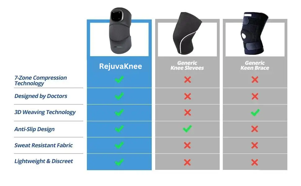 RejuvaKnee offers medical-grade compression paired with heat and massage technology to the entire knee, improving circulation and blood flow.
