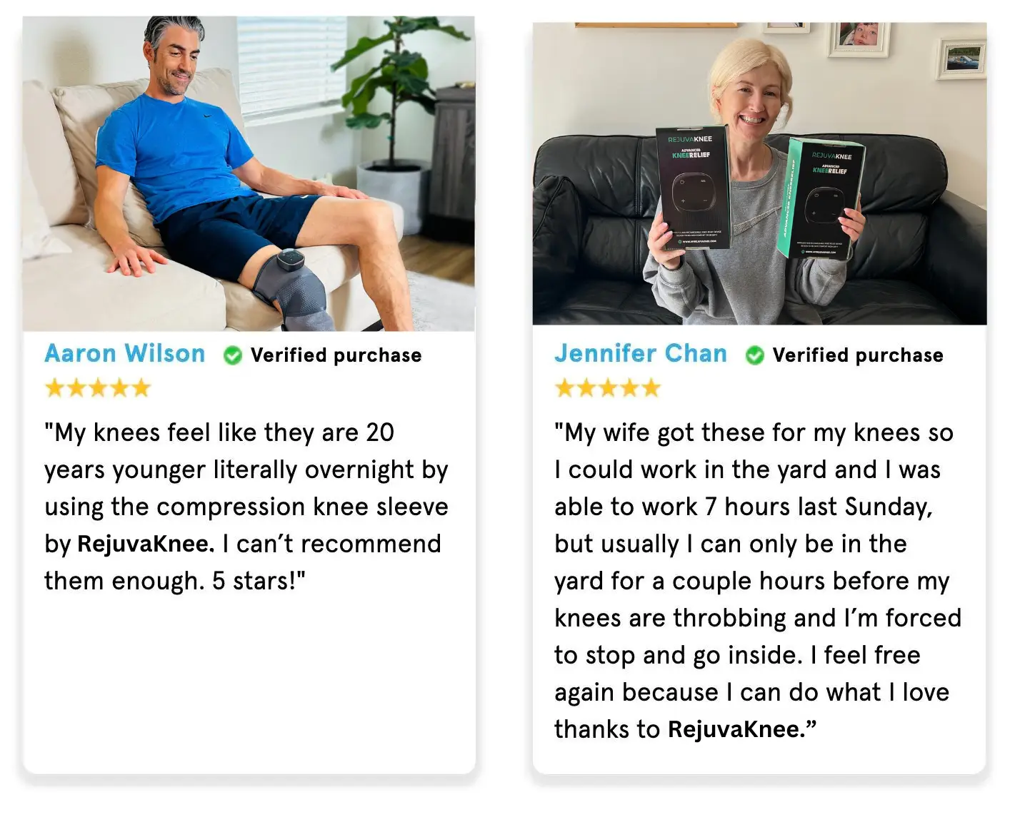 “Before RejuvaKnee, I couldn’t even drive or stand in place for 10 minutes. Now I’m working out every morning! It's given me my life back.”